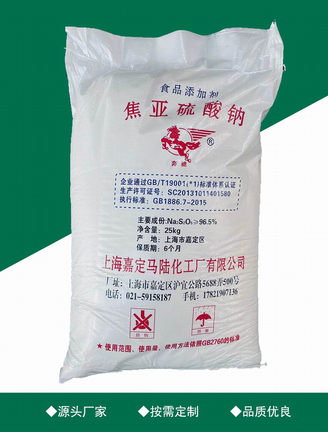 上海嘉定馬陸化工廠有限公司主營生產,焦亞硫酸鈉、亞硫酸氫鈉等產品生產,幾十年的專注焦亞硫酸鈉研發(fā)生產,公司擁有完整、科學的質量管理體系,為確保公司產品能夠長期立足于市場,增強客戶的粘性,可滿足客戶的非標定制需求,可提供產品各個用途的解決方案,公司重信譽、守合同、保質量、快速發(fā)貨以,我們擁有專業(yè)的售前售中、售后團隊共同協(xié)作,確保用戶采購中的每個環(huán)節(jié)都能有滿意的體驗度。